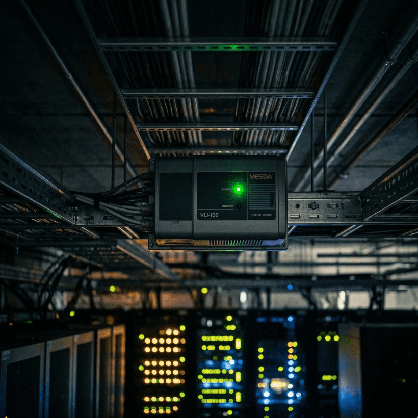 Every data module is equipped with either VESDA — Very Early Smoke Detection Apparatus — or high-sensitivity smoke detection devices. VESDA systems are among the most advanced early-warning technologies available, capable of detecting smoke at concentrations far below the threshold of conventional detectors. That margin of time between detection and response is the difference between a managed incident and a significant loss. We do not wait for a fire to be visible. We detect the conditions that precede it.